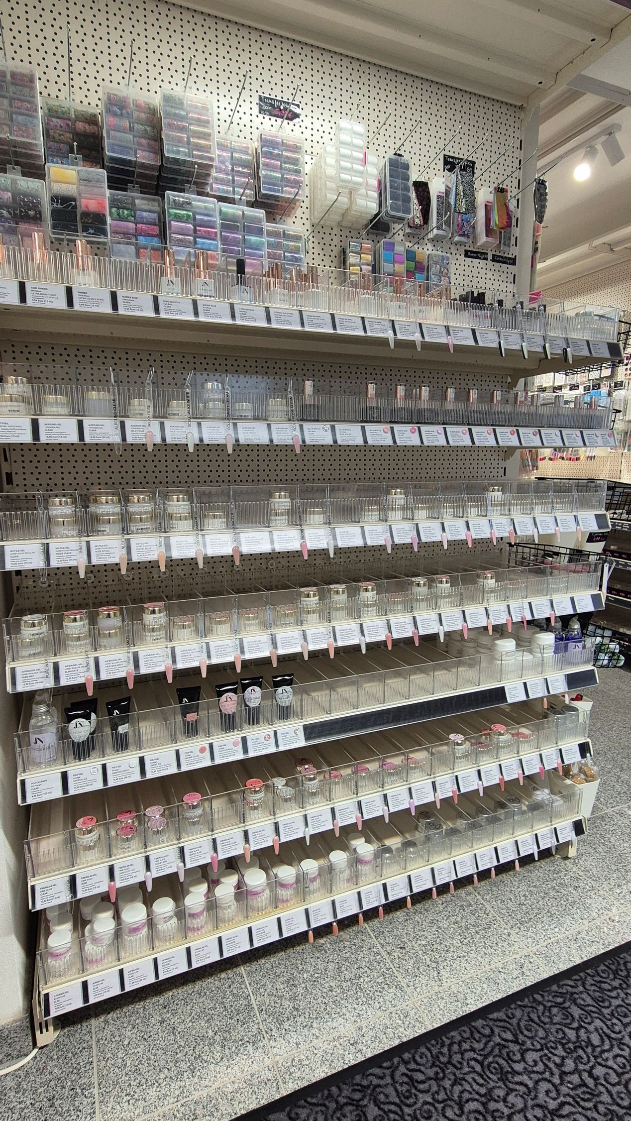 Vor Ort erwartet Dich eine große mit Sorgfalt ausgewählte Produktpalette mit hochwertigen UV-Gelen und Nageldesign Zubehör rund um das Thema Nagelmodellage, künstliche Fingernägel, UV-Gel, Acryl, Polygel